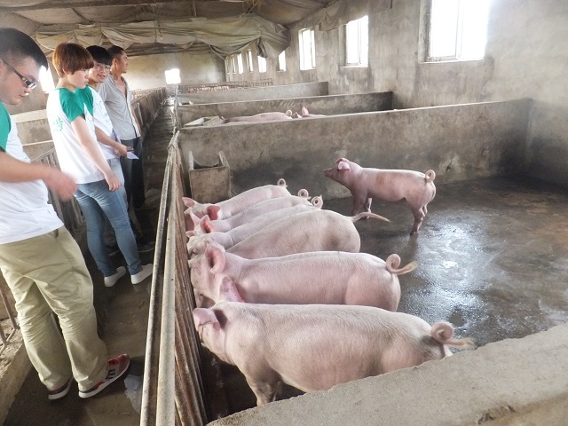 明光市,安徽省滁州市代管县级市。明光地区生产总值以每年10亿元左右的幅度递增,2016年达到134亿元,是2011年的1.6倍,年均增长10.4%。其中,农村畜禽养殖占据经济发展中的很大比例。调研团队于早上九点到达石坝镇,就镇上的养猪专业合作社进行考察。为获得更好的调查数据,团队深入养猪场进行观察和询问。不可避免的,团队必须面对合作社恶劣的养殖环境,刺鼻的味道充斥在鼻腔,地面更是布满脏污,但队员们并没有表现出不适,反而以更加积极的态度展开调研,不时与工作人员进行认真的询问与讨论。到达中午时刻,为获得更加真实的人员管理模式,团队选择与工作人员一同吃饭,尽管饭菜简陋,但队员们反而调侃更加贴近养殖人员。