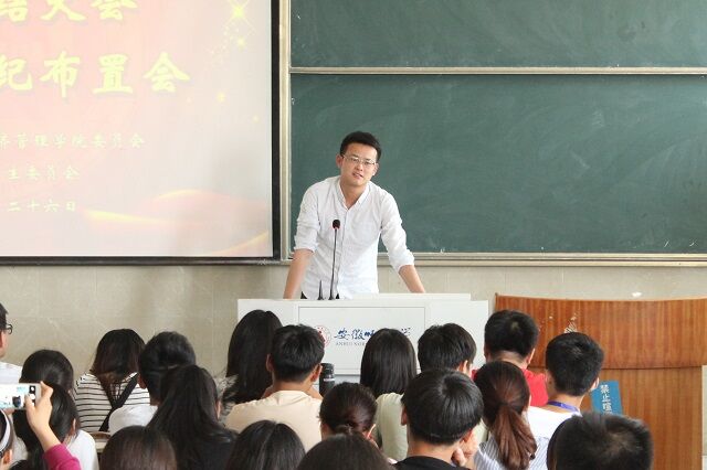 随后团委副书记甘伟进行发言。他表示本届员工会有两大亮点:第一,做事踏实;第二,集体荣誉感强。也正是在这两个亮点的作用下,本届员工会能够取得比较优秀的成绩。亮点有,但同时也存在一些问题,比如说部分委员没有尽到应尽的职责,做事情不积极,不主动,这些问题有待在后续的工作中解决。针对本届员工会的表现,甘伟提出一些建议和要求:作为员工会的成员,要遵守规矩,其次要提高动手能力,部门的创新与学习要常态化,并且要时刻反思,存在着哪些问题,应当怎样去改进,怎样让部门越来越好,让整个员工会越来越好。另外期末将至,甘伟提醒大家认真复习,积极备考,后期的暑期社会实践和迎新工作仍然需要大家全力以赴地去完成。