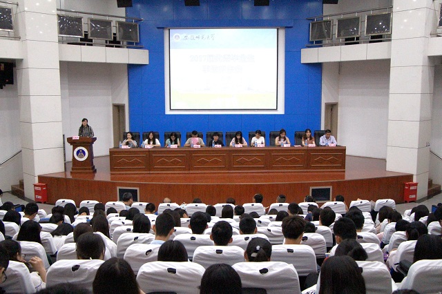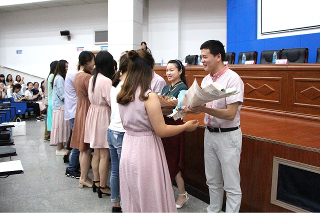 在庄严肃穆的国歌中,报告会正式拉开了序幕。会议伊始,由党委副书记李海燕代表毕业生们向四年里一直默默付出着的老师和家长们表示感谢,并致以他们最真挚的祝福。