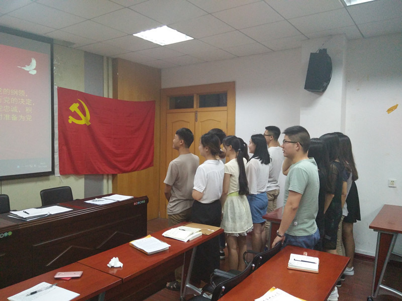 支部书记胡亮亮随后作了总结发言,他首先对此次发展的七名同志和转正的四位同志表示祝贺。同时希望大家今后要以更加严格的标准要求自己,不断地加强党性修养,真正发挥一名共产党员的模范带头作用。此外,胡亮亮老师着重对毕业班党员同志做了相关的纪律要求,要求毕业生党员重视做好组织关系转移工作,站好最后一班岗,为低年级同学做榜样,在文明离校过程中发挥党员的先锋模范作用。最后,为了引导毕业生提高党员意识,全体参会的2013级毕业生党员以饱满的热情重温了一遍入党誓词。希望毕业生党员可以时刻铭记党员身份,增强党性修养,牢记宗旨使命,做文明离校的表率。