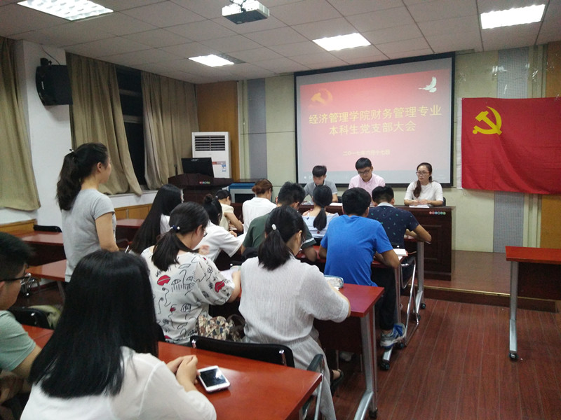 本网讯 (财务管理专业本科生党支部 周海芹 吴海锋)6月17日晚20:00,m88官网财务管理专业本科生党支部于学院行政楼二楼报告厅召开支部大会,讨论接收魏照民等7名同学发展为预备党员以及周海芹等4名同学预备党员转正问题,大会由支部书记胡亮亮老师主持。
