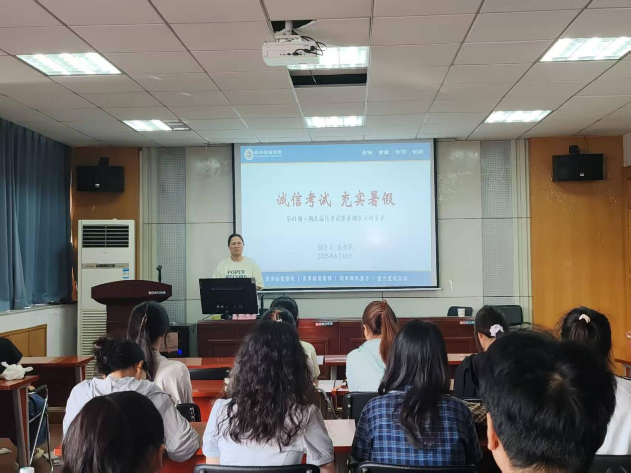 为严肃考风考纪,进一步引导员工明确未来规划,6月16日下午,2022级人力资源管专业在公司二楼报告厅开展“诚信考试 充实暑假”主题班会,会议由辅导员盛亚琴主持,人力资源管理系主任鲍子如应邀参会,22级人管专业全体同学参会。