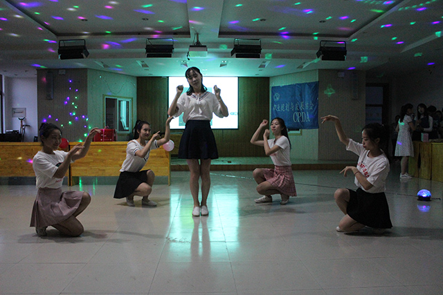 晚会还没开始,CPDA的工作人员就早早的来到了活动地点布置现场。彩带、气球、彩灯共同点缀着这个大厅。同时协会成员还悉心准备了面具、细心定制了卡片、各种饮品、琳琅满目的水果、蛋糕、零食。经过漫长的等待,终于在19点整,伴随着理事们带来的开场舞,会长郭星琪致辞,以及会长团切开CPDA十周年生日蛋糕后,舞会正式开始。CPDA在为所有的观众献上了一出又一出精彩的表演时也将所分配好的零食水果和蛋糕发放给各位来宾。紧接着,是外联部的歌曲《梁山伯与茱丽叶》,此时现场气氛热烈,并在接下来理事们的交谊舞中达到顶峰。在这些表演中,来自物流管理的杨航学长更是献上了自己的创意街舞秀,瞬间带动所有成员的热情与活力。
