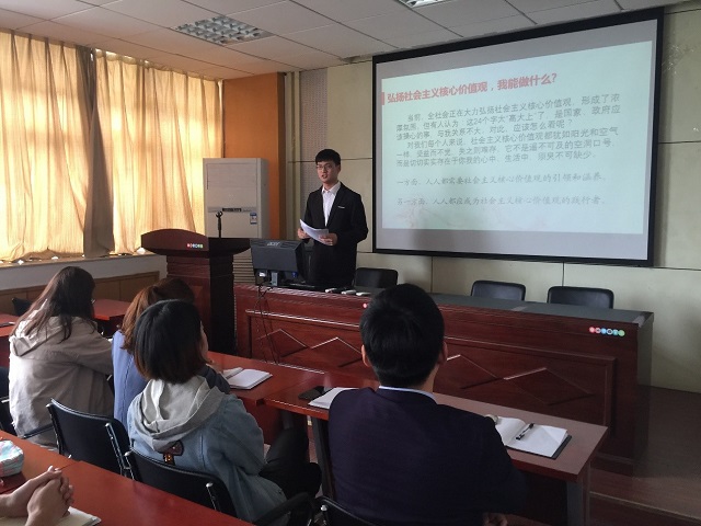 支部党员陈昊从《理论热点面对面系列读本》出发,谈到了理论热点面对面、改革热点面对面、法治热点面对面、全面小康热点面对面四个问题。对于社会主义核心价值观员工党员能做什么,他也提出了自己的看法——“当前,全社会正在大力弘扬社会主义核心价值观,形成了浓厚氛围。但有人认为:这24个字太“高大上”了,是国家、政府应该操心的事,而我认为,对我们每个人来说,社会主义核心价值观都犹如阳光和空气一样,受益而不觉,失之则难存。它不是遥不可及的空洞口号,而是切切实实存在于你我的心中、生活中,须臾不可缺少。一方面,人人都需要社会主义核心价值观的引领和涵养。另一方面,人人都应成为社会主义核心价值观的践行者。”