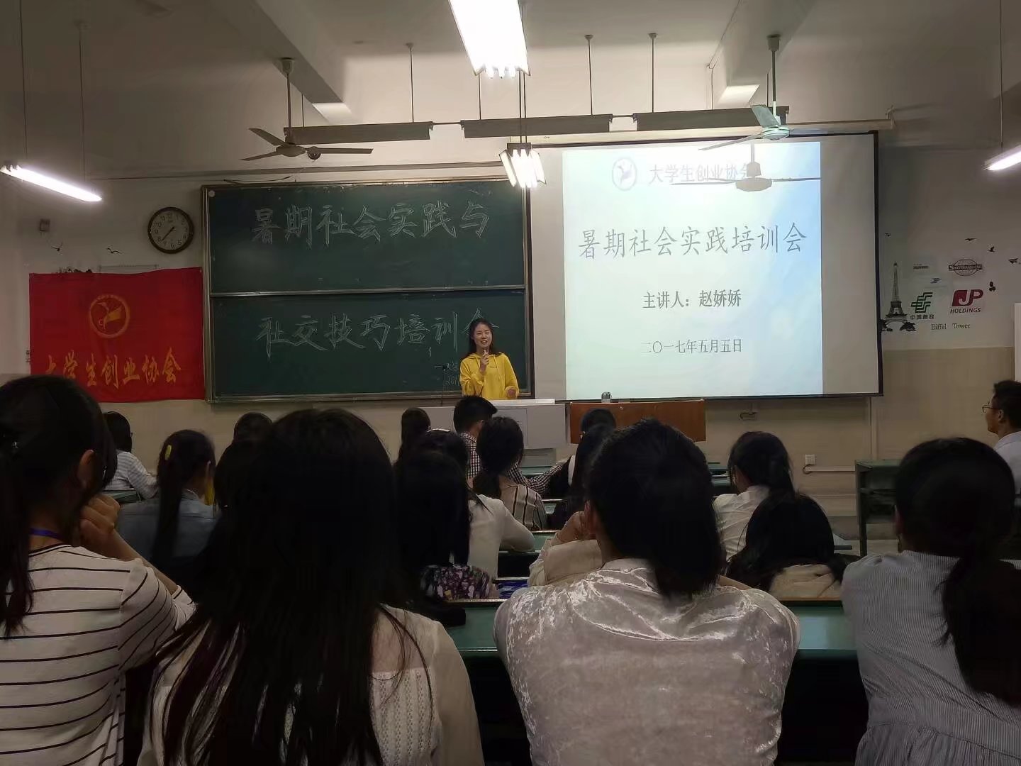 最后,由会助楚相杰对老员工创业协会2017年暑期社会实践活动进行简短介绍,并由会长金云为我们补充几点活动中的注意事项,做出此次培训会的总结,进行暑期社会实践的最后动员!