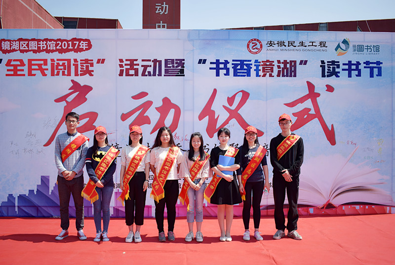 上午9:30,伴随着主持人慷慨激昂的介绍,“书香镜湖”全民阅读系列活动启动仪式正式开始。启动仪式上,我们班的团支书仇娜同学很荣幸的作为老员工志愿者代表为到场的各位嘉宾宣读了《“书韵江城”全民阅读倡议书》。我们已经进入了信息化的时代,在这个信息泛滥、人性浮躁的时代,我们更应该通过阅读去沉淀自己的心灵,丰富自己的内在涵养。