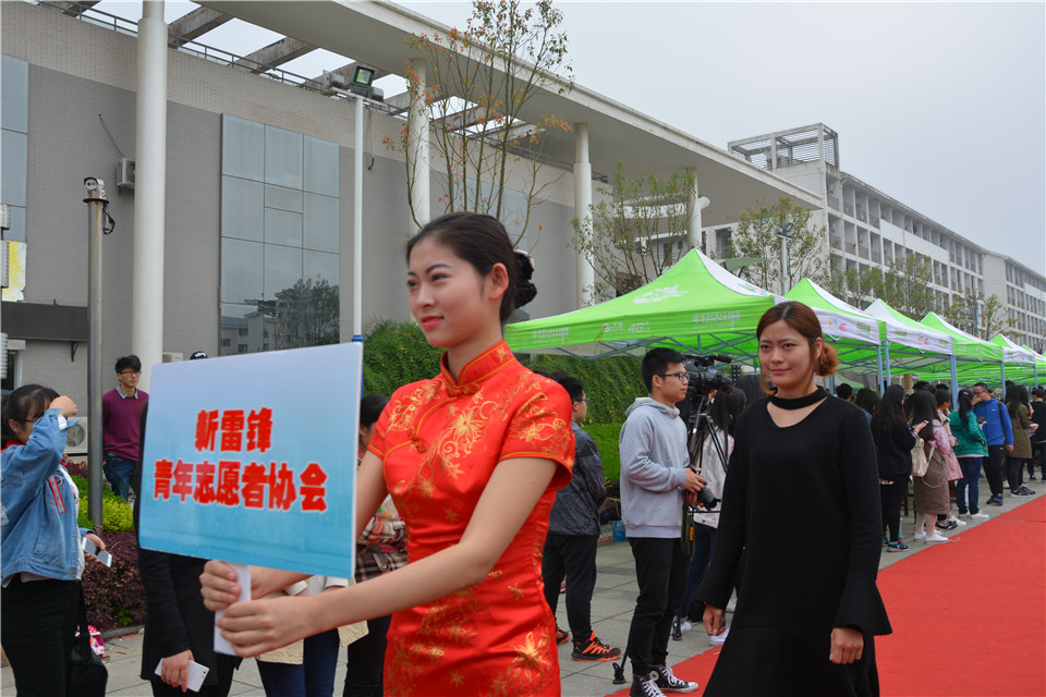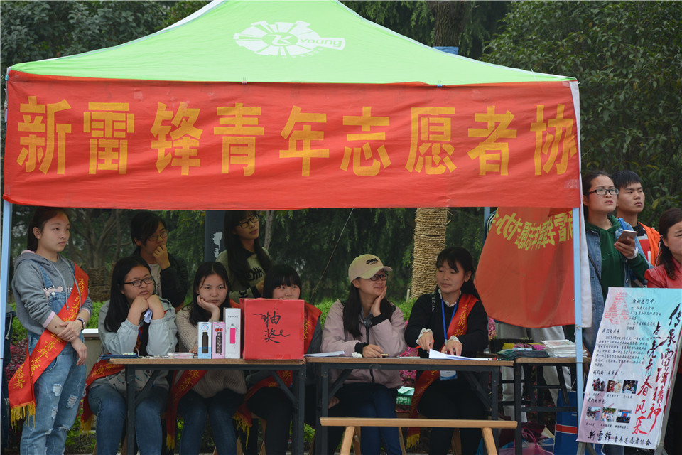 新雷锋青年志愿者协会在18号位置摆台,一些理事和部长早早的就开始了准备工作,同时也为大家准备了一些关于协会活动的问题,等着大家过来答题,并准备了卡套,杯子等一些精美小礼品。现场来答题的人很多,而理事们也忙的的不亦乐乎。现场开幕式展演以“战队对擂”形式开展,社团文化节现场,龙狮协会和英语之角协会为同学们带来精彩纷呈的表演,武术和街舞古典舞蹈也赢得同学们阵阵掌声。社团表演结束后,所有社团会长依次进行走红毯,在接下来的社团颁奖环节中,新雷锋青年志愿者协会在社团精品活动评选中,百千万志愿者结核病知识防治知识传播活动获得了“精品活动”称号,在“十佳社团”评选中荣获“十佳社团”。协会会长代表协会上台领奖。