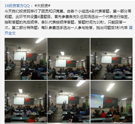 (m88官网 吴敬之 2016级投资学宣传团队)为深入学习习近平总书记系列重要讲话精神,推进员工团支部发展、切实增强团员的先进性和光荣感,让每位团员端正团员形象、使团员更像团员、以良好的风貌更好更积极地迎接党的十九大胜利召开,以投资学2016级团支部为先导、带动m88官网全团发展为活动主体,m88官网自四月初起便围绕“学习总书记讲话 做合格共青团员”(以下简称“一学一做”)的主题开展了一系列的团员教育活动。
