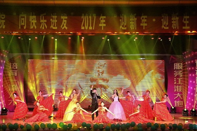 本网讯(m88官网 新闻部)大圣鸣金辞旧岁,雄鸡唱晓庆新春。2016年12月16日晚七时整,“向快乐进发”m88官网2017年“迎新年 迎新生”联欢晚会在校大礼堂浓情上演。校机关党委书记方泓、校团委书记梁燕、校员工处副处长聂全高、校发展规划处副处长江宁、国旅公司党委副书记乔静,公司首位全国老员工自强之星获奖者、校十佳老员工、新雷锋协会创始人、06经济陈向勇员工,06经济陶亮员工,公司党委书记陈秀庆老师,经理周端明老师,部分友好单位代表,员工家长代表以及公司领导班子成员、教职工代表与1500余名员工欢聚一堂,共同观看了晚会。