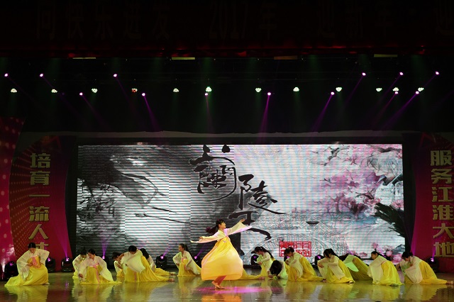 “看海天一色,听风起风落,执子手吹散苍茫茫烟波……”一曲《大鱼》美妙空灵,不仅勾起了我们对电影《大鱼海棠》所描写的自由世界的向往,更是触及了我们的内心深处,引起大家的共鸣,伴随着歌声翩翩起舞的参演者,让我们沉浸在听觉享受的同时,又使我们享受到一场别开生面的视觉盛宴,舞蹈与歌曲的融合,令人如痴如醉;“红军不怕远征难,万水千山只等闲”,《长征路漫漫》,红军的长征精神犹如一座丰碑,永驻我们心中,鼓舞着一代又一代的中国青年为社会主义现代化建设奋斗,壮志豪情,千言万语道不尽;“大漠孤烟直,长河落日圆”描绘出边塞的壮丽风景,边塞明珠—丝绸之路曾经的繁华令人叹为观止,民族舞《丝路花腰情》再次将丝绸之路跨高山、涉荒漠、越大河的雄浑之姿展现在我们眼前;青春建功十三五,携手共筑中国梦,一个梦想,从历史长河中走来,闪耀着伟大复兴的曙光;一种精神,在亿万人心底凝聚,激荡起我们继续前行的力量。一首手语歌《国家》激发了无数人的爱国情怀,顶瓦成家,齐家国治。