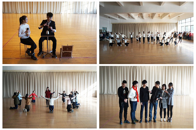 继前期节目的选定和第一次联排的相互磨合,本次联排以更加完善节目内容,查找不足并改正以提高节目质量,更加培养演出人员的默契以增强节目连贯性等为目标,从第一个节目到最后一个节目,各位评审及指导老师张龙,根据节目特色,就各个节目分别给出一定的建议,从细节处出发,更加关注参演者的神情、动作和相互的协作能力,勉励参演者坚持就会有收获。各演出人员尽管有些紧张和拘束,但也从容不迫地陆续完成表演,对比第一次联排有了很大的进步,并悉心听取各评审及指导老师张龙的意见,一次次重复、一步步努力,通过不断的自我完善与默契的培养,务求成为舞台上的亮点,实现双迎晚会的华美献礼。联排中参演人员斗志昂扬,秩序井然,与彼此互动磨合,相处融洽,在各评审与评委的指导下,将节目精雕细琢,为双迎、为自我而不断拼搏,赢得了各位评审与评委老师张龙的热烈掌声。