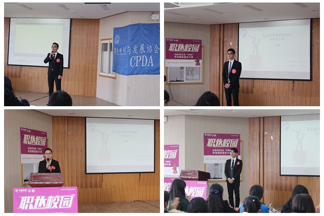 从初试的笔试、简历制作到复试的面试比拼,再到最后的决赛,历时一个多月,共有6名选手脱颖而出在决赛中展示自己的职场风采。决赛分为“职场我展示”和“职场我了解”两大环节。在第一环节中,评委通过选手个人制作的VCR、自我介绍和现场答辩三方面进行考核打分。面对评委犀利的问题,选手们沉着冷静,对答如流。他们对自己所要应聘的岗位进行了解说和演讲,其中包括行政助理,人事专员,企业财务专员以及行政管理。在问题面前,选手们展现出了老员工应有的自信和随机应变能力。评委老师也对参赛选手的现场表现做出了精准深刻的点评并提出了中肯的意见。