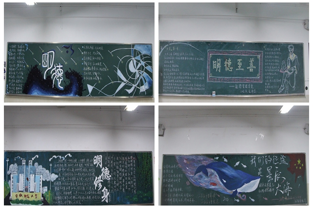 评分人员认真仔细地察看了每一间教室的布置,对于某些班级做得比较好的地方,如墙体装饰得当给予了高度的肯定和赞扬;对于其中没有做到位的地方,如“明德”主题不够突出、装饰过于简单等提出了改进意见。值得一提的是大部分教室都有黑板报、班级公约、标语、照片墙等展现形式,也有教室进行了富有创意的装饰,总体上来说每个教室的文化氛围都比较浓厚。最后,所有评分人员根据班级卫生状况、班级是否有公约、班徽和标语等打分标准,评选出了前三名。