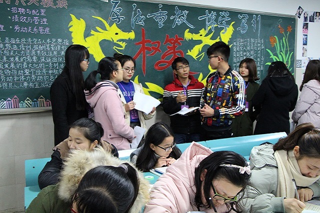 本网讯 (新闻部 凌潇潇)为了营造良好的学习氛围,增强员工们的纪律意识,推动文明班风建设,m88官网特地开展固定教室文化氛围督察活动,于11月30日晚上7点,由员工会主席何成以及各部门的部长组成的督察小组对16级各专业的固定教室进行评分。