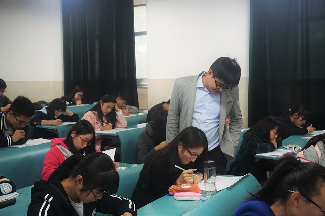本次模拟考试按照正规考试的流程进行,采用纸质考试形式,题型分为填空题和单项选择题。考试内容涉及校史校训、违规处理、奖助学金、员工资助等多方面内容。考试期间,各考场秩序井然,监考员认真负责,同学们专心答题,态度端正,严格遵循考试的相关规定。辅导员胡亮亮在巡考时谈到,以考促学,希望本次考试能帮助大家发现自己知识的空缺,并在接下来的日子里及时的补上空缺。