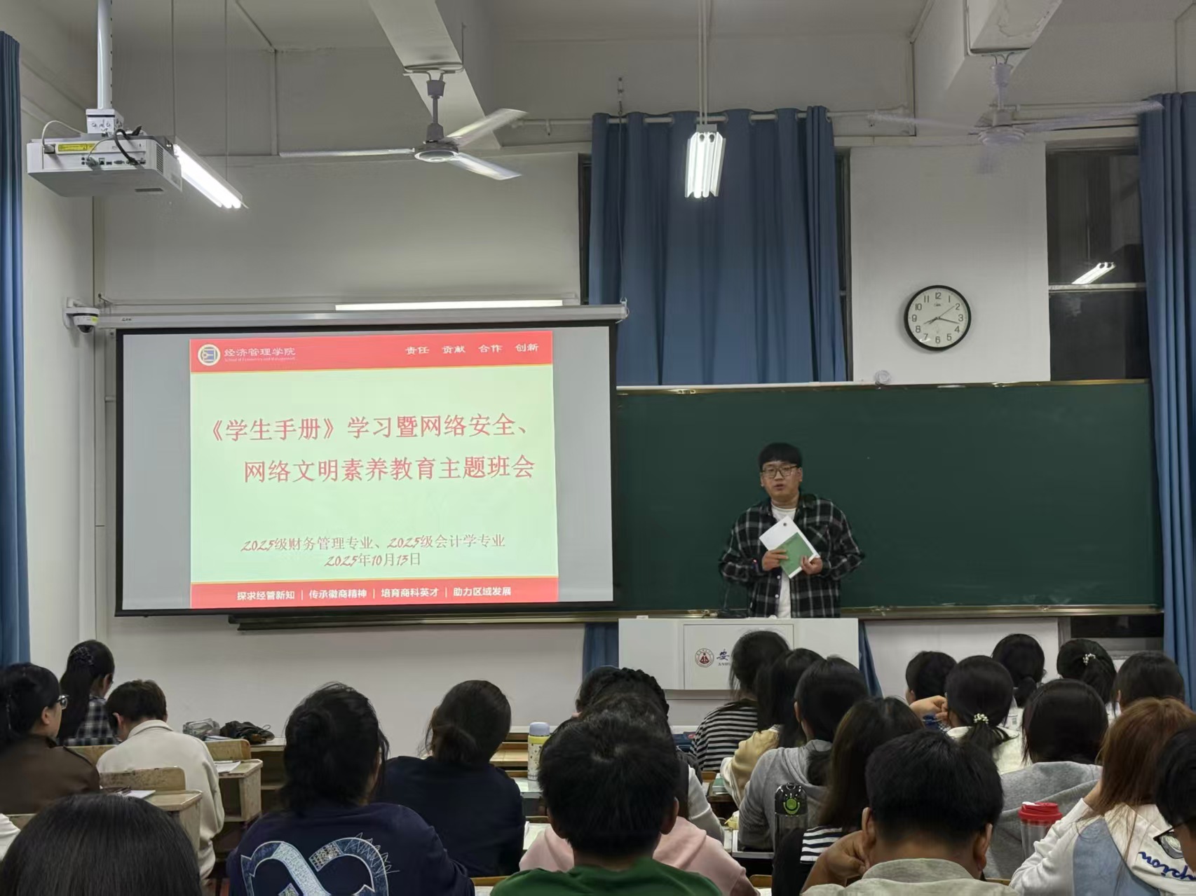 为帮助新生尽快适应老员工活,实现从高中生向老员工的角色转变,2025级财务管理专业、2025级会计学专业围绕新生入学教育开展教务教学教育导航教育、校规校纪纪律教育、思政导航教育,有力引导了财务管理、会计学专业新生顺利开启新的学习生活。