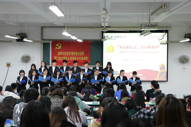 近两个小时的讲座深入人心,教室里不时激起阵阵掌声。讲座过后,班主任吕洋借培训课机会,特地集结了五名“116工程”的优秀预备党员,通过他们的实际行动引领我们的向党之路。