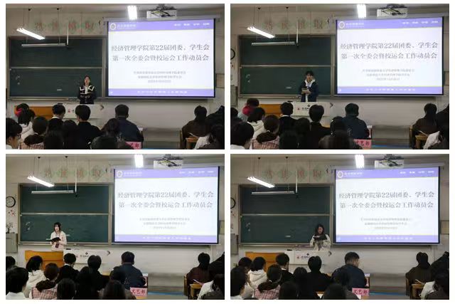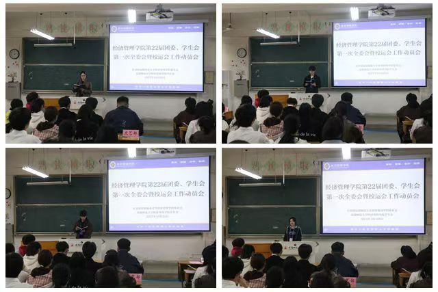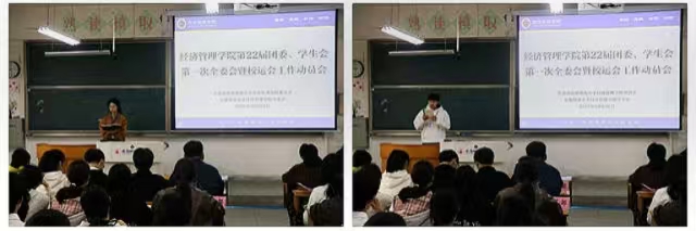 各部门部长依次上台介绍部门职能并向新加入的委员表示欢迎,以及汇报前期工作进展、近期工作规划,同时说明校运会的筹备情况。