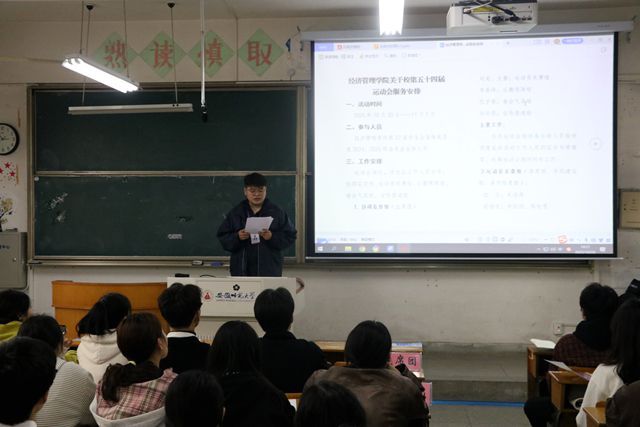院员工会主席刘炎对校运会各部门的具体分工进行明确,同时说明相关注意事项。