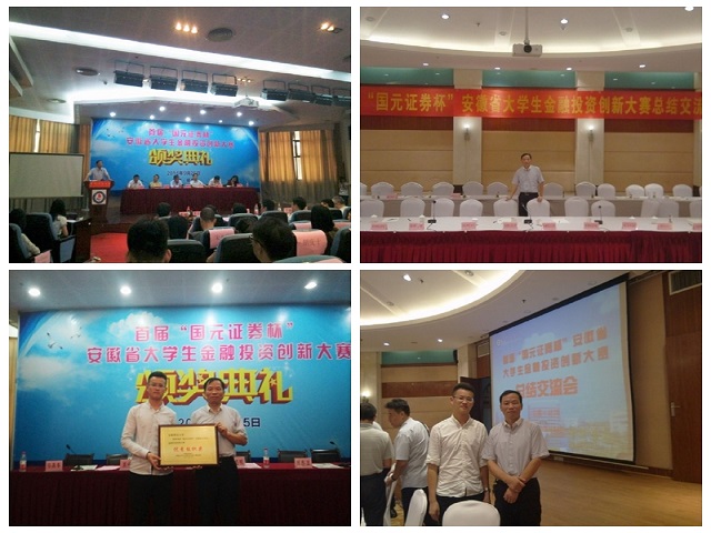 本网讯(经济学会)9月25日,m88官网副教授胡庆十老师和团委副书记甘伟受邀出席安徽财经大学举办的首届“国元证券杯”安徽省老员工金融投资创新大赛颁奖典礼。首届“国元证券杯”安徽省老员工金融投资创新大赛由安徽省教育厅主办,安徽财经大学承办,国元证券股份有限公司、上海大智慧股份有限公司协办。比赛共设股票虚拟仿真交易,金融投资策略分析,公司上市可行性分析3个比赛项目,旨在提高我省老员工综合素质和创新创业能力,培养公司老员工掌握金融投资分析和决策方法,鼓励公司老员工探索金融投资技术和方法创新,促进养成我校老员工的金融人才的团队合作精神,受到了我省领导、国元证券股份有限公司、大智慧股份有限公司的高度重视。