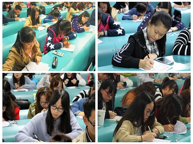 本次考核分为三个部分,分别为限时抄写、撰写加油短讯、简要场景描绘,考核时间总计30分钟。限时抄写旨在检验同学们的书写速度与工整程度,以适应运动会及时的要求,而为运动员写一段加油简讯,则是模拟运动会场景,真实反映出同学们对运动会相关文体的掌握程度与语言功底,最后的简要场景描绘,则更体现本次运动会对通讯小组准确的要求,让运动会中的精彩瞬间都能被准确的传达出来。同学们在开考信号发出后,迅速投入到题目的应答中,用笔尖表现出自己对运动会的高度热情。最后,新闻部工作人员经过认真、严谨的筛选,共选拔出25名优秀的通讯小队成员。