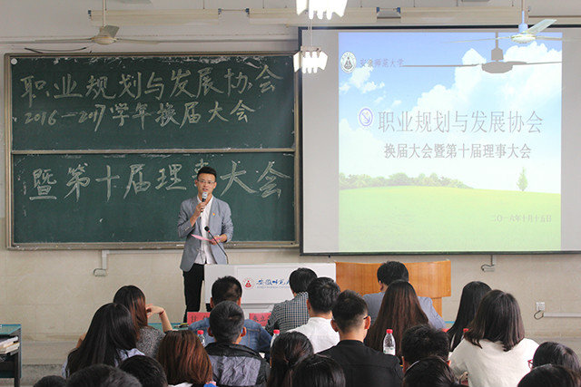 本网讯(CPDA 罗文如)推陈出新,开辟新的征程。安师大职业规划与发展协会于10月15日下午,在行知楼2010503成功举行了第十届换届大会。出席本次大会的有经管院教授朱立东,团委副书记甘伟,辅导员吕洋,院会主席何成,兄弟社团代表和CPDA全体人员。