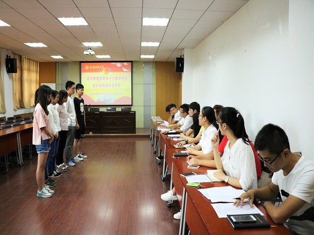 本次换届竞选主要分为两个部分:主席团与部长团的竞选。竞选流程根据前期自主提交申请表,后期分部门进行公开公正的集体选拔。下午2点,按照抽签的顺序,由新闻部首先进行竞选。竞选内容主要分为三个模块:自由发言、评委提问以及无领导小组讨论。首先,每个部门的竞选人员需要集体进入考核场地,依次给予每人三到五分钟的自我陈述时间,再由部门上一届部长根据陈述内容并结合去年一年的工作情况进行有针对性的提问,最后按照主席吴娜给的案例进行无领导小组讨论。最终录取结果是结合所有评委的意见进行综合考量。