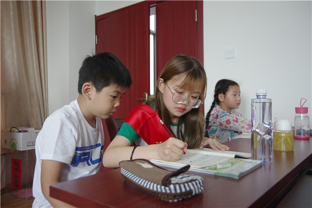 最认真的态度迎接祖国的花朵。严谨有序的座次充满温情,左右手两边的小精灵在志愿者的保护中静静写着暑假作业,孩子们提问,成员们细声引导,解决问题。成员与孩子们之间的气氛和谐,相处良好。