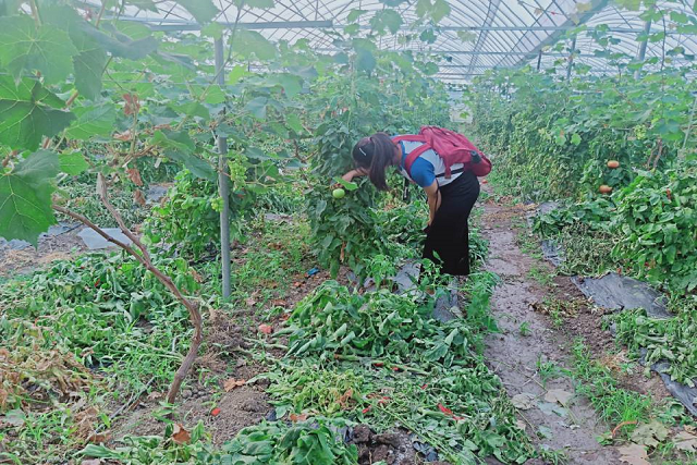 下午,我们跟随他的步伐来到了大棚种植的实地。可以发现当地的大棚种植并不完全是现代化的,还缺乏许多现代化的设施。这应该是前文中扶贫专干提到的多方面条件限制导致大棚种植建设的基础设施并不是很健全。