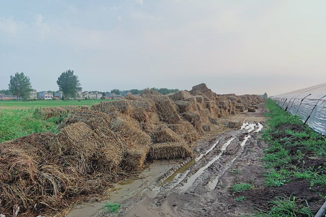 图中可以看到堆积的大量的秸秆。
