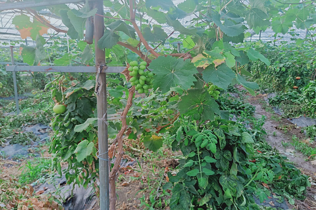 走进大棚内,我们可以发现此时当地种植的农作物种类,主要是葡萄和西红柿。