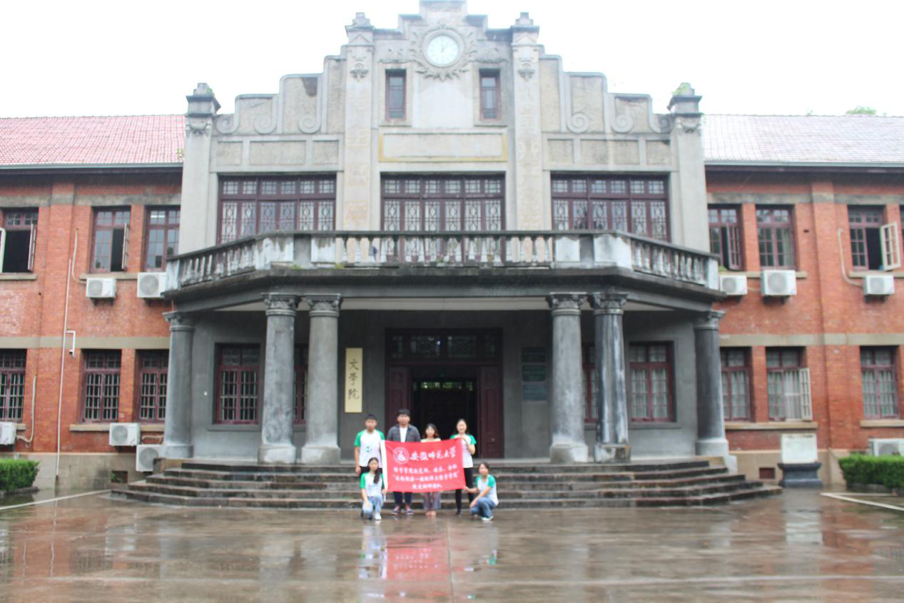 与吕洋老师、李萨萨老师在安庆师范大公司园内汇合后,我们随即参观民国时期省立安徽大学的教学楼——红楼。