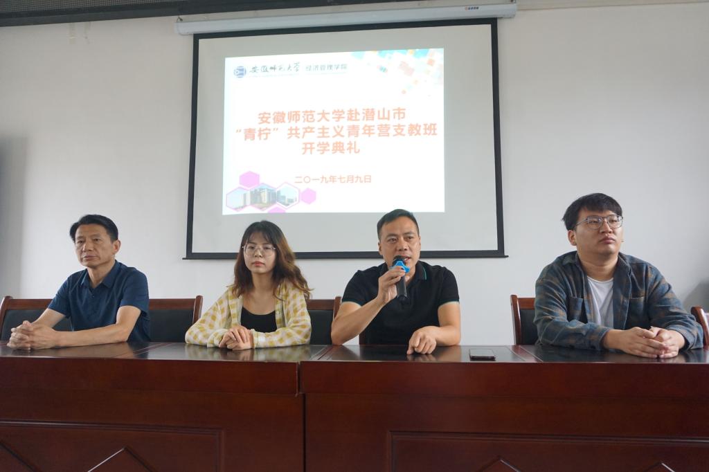 会议伊始,汪董事长发表讲话。首先对我们的到来表达无比欢迎与感谢,感谢送来的温暖、趣味知识与无限的乐趣,对我们开展的志愿活动表示全力支持。其次汪校叮嘱孩子们一定要认真学习,珍惜这来之不易的接触新事物的机会,也要尊重代课老师,积极主动地完成相关作业,同时一定要把安全放心间。紧接着,吕洋老师发言,对槎水镇的大力支持表达无比感谢,也要求支教队员们认真规划活动积极主动地与当地相关人员沟通,尽量不给当地人员带来不必要的负担。最后吕洋老师也传达了对安徽师大经管学子的期望,希望"青柠"成员们能够帮助孩子们多多领略山外世界的风采面貌,增长见识,树立远大理想。