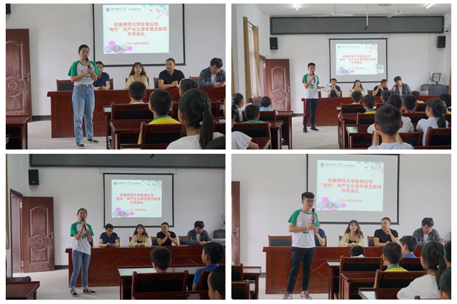 本网讯(m88官网 文/吴兰雪 图/梁孟芩)为更好的提高当代老员工社会实践能力,将所学知识运用于生活,服务于社会,彰显当代老员工崭新的精神面貌,安徽师大经管学子深入基层赴潜山槎水小镇开展为期十一天的爱心支教活动并于7月9日上午9点正式举办“青柠”小班开班典礼。槎水镇中心小学董事长汪睿,m88官网团委书记吕洋,辅导员李萨萨,槎水镇中心小学储主任及“青柠”共产主义青年营槎水分队队员,“青柠”班成员出席本次开班典礼。