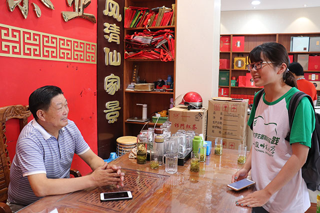 与此同时,调研团队的第二支分队也到达了金寨县茶叶批发部,采访批发部的老板。从老板的叙述中团队得知,茶叶批发部在茶叶的生产和销售方面和其他六安瓜片的门店基本一样,但它也有自己的独到之处,例如,在采茶季来临时,批发部的老板会以斤为单位对散户的茶叶进行收购,同时,老板为自己的批发部设置了网站,用以宣传六安瓜片和其他茶叶,做自己的品牌。