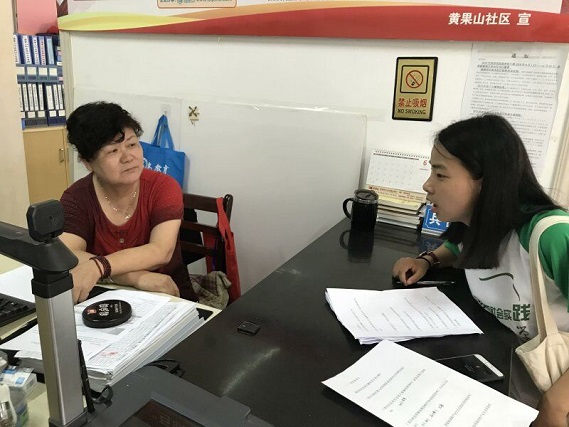 赭山公共服务中心是芜湖市镜湖区的几个较大社区之一,背靠赭山之灵秀,遥望镜湖之华光。服务中心由两个社区组成,一个是小官山社区,一个是黄果山社区。由于地处中心城区,故而周边设施完善,人流如潮。调研小组中杨燚、李理、陆帮辉、聂文丽同学分别前往小官山社区和黄果山社区访谈社区居委会负责人和部分老人,调查社区居委会对于老人金融安全风险防范的态度和相关工作开展情况。