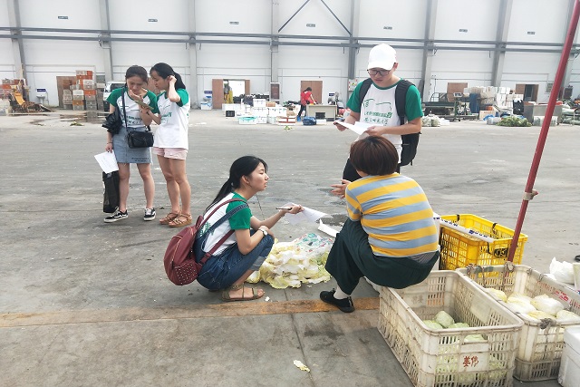 早上我们进入批发市场,来往车辆较少,一进门发现并不宽裕的道路两旁蔬菜小贩们已经准备完毕,在他们不远的位置堆放着腐损蔬菜叶子,比如白菜叶、包菜叶等,正值阴雨天,走过去会闻到整整湿臭味。我们调研的环境不是非物质文化遗产,不是饱经沧桑的历史博物馆,是一座城市里刚刚开业几年的农贸市场,美景没有,自然不能触景生情;文化内涵没有,自然体会不到这座城市的历史底蕴。虽然在一所城市里农贸批发市场总是默默无闻,从不引人瞩目的,你可从未听说过有人会为农贸批发市场慕名而来的吧,但是我们每天都会与它或多或少的打交道,它存在是有它至关重要的作用的,民以食为天!