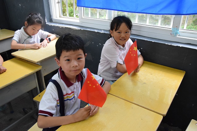 “我和我的祖国,一刻也不能分割,无论我走到哪里,都流出一首赞歌。”甜美的歌声回荡在整个校园。小朋友们在实践队员们的带领下认真学习这首赞歌。自豪洋溢在脸上,对祖国的爱不禁油然而生。当小朋友们收到实践队员们发的小国旗时,那种欣喜溢于言表。“老师,你能为我和小国旗拍张照片吗?我长大了一定要去北京天安门看升国旗。”小男孩稚嫩的声音说到。爱国,不问岁月坎坷亦或安乐,只是那来自内心深处的自豪感、幸福感。“我心中的祖国,像一个巨人,它高大雄伟……” 交流会最后,小朋友们书写下对祖国妈妈想说的话。用手中的画笔,谱写对祖国的爱。