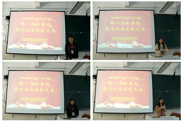 会议伊始,各部门部长依次发言,对近期部门工作作以总结并提出建议。他们肯定了本部门小委员们在运动会中的出色表现,并表示希望在接下来的工作中能与委员们相互促进,共同进步,尽力做到最好的自己,也会加强部门间的交流和合作,以便于工作的顺利开展。随后,李德旺主席宣读了运动会期间荣获先进积极分子的委员名单,并由吕洋老师和主席团成员上台为获奖人员颁发证书。