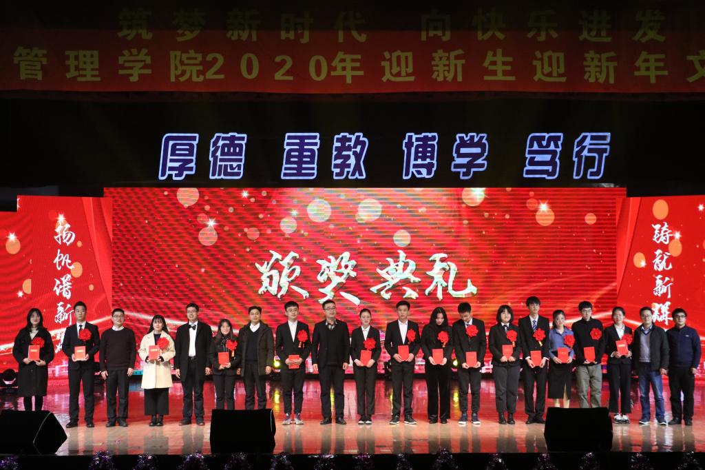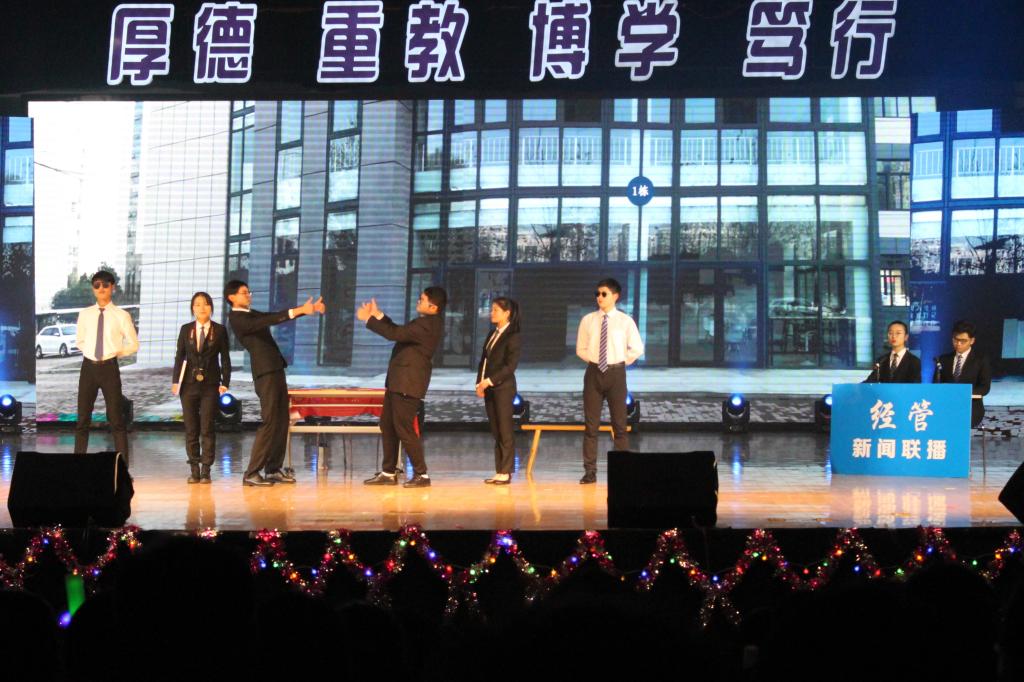 经管礼赞,礼赞着他们,这些用一摞书、一支笔,就在专业知识竞赛场上勇敢角逐,用执着和奋进书写璀璨篇章的经管学子们;礼赞着他们,这些带起优秀的冕冠,为梦想燃烧,为责任勇敢,在赛场、舞台、志愿场地躬行的实践者们。颁奖典礼上,他们用奋斗与汗水书写青春的报告,树立青春的榜样。青春不息,奋斗无悔!唱念做打,窈窕淑女一娉一笑间粉墨登场,身法轻柔,水袖旖旎一放一收里情思万种,笛琴共鸣,《罗袖思》在衣裙蹁跹间敛来了多少脉脉思念。清风一调,花色一朝,峥嵘岁月在歌声里重现,激越时代在曲调中绽放;这盛世,如您所愿,这华夏,万世昌荣,《经彩之声》演绎非凡,欢乐无限,用美妙的歌声描绘青春的色彩。足不出户,阅尽天下事,《经管新闻联播》在端庄的姿态间透露出俏皮的幽默,寝室间因洗衣房发生的“会晤”,员工会查寝“缴收”违规电器,经济学会招得女生一名,解决了男女比例失调的问题处处笑点处处智慧。音符跳动在飘扬的发丝上,节奏拍打在衣角折叠的纹路中,每一次盘旋摩擦,伏地起身都挥发出炽热的温度,当白昼替代夜晚,当快乐替代失意,当热情蔓延下舞台流淌到整个礼堂,这支街舞《水平线》带来的就是青春最明亮的风采。一曲音符,一段舞蹈,二三两情愫,六七许柔情,我们相约赴一场青春的盛宴,奋斗拼搏,不忘传承,继往开来,砥砺前行!