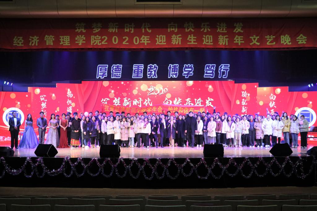 乐声掌声欢笑声声声入耳,载歌载舞载喜悦满载而归。晚会缓步走向结尾,我们和2019挥手告别,亦向2020伸手拥抱。晚会全程既有着幽默风趣的鲜活画面,也有着让人泪目的感动时刻。我们在此中领略了徽风皖韵的风光,经久弥香;感动于最质朴的师生情谊,动人至深;怀念着转瞬即逝的青春岁月,时光不老;也更深入地了解到身为师大经管人的责任与担当,壮心燃起。当然,晚会的成功更离不开台前幕后的每一位工作人员,这场绝美的视听盛宴便是他们心血和汗水的最好见证。