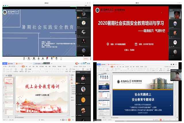 快乐实践、安全至上。公司2020年暑期社会实践各班级、云团队、安全小组相继召开了安全教育主题的线上会议,确保实践工作的安全进行。团队安全员通过一帧帧精心制作的PPT和细致耐心的讲解向同学们强调保护自身安全的重要性,并带领学习公司暑期社会实践安全须知、暑期社会实践活动医疗手册,进一步加强了同学们对暑期社会实践安全问题的了解与认识。此外,在每个社会实践团队还进行每日安全汇报工作,确保每位实践同学的安全。