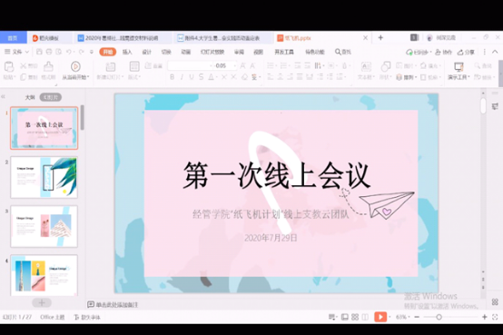 7月29日晚8点,“纸飞机计划”暑期支教云团队在队长王璐的领导下于腾讯会议开展了第一次线上会议。在短暂的介绍中,成员们都对彼此有了初步的了解,会议气氛渐渐活跃了起来。接下来,为了让队员们对本次实践活动的目的、意义及工作详情有进一步的了解,队长王璐同学总结了前期同董事长及家长的沟通情况,对“云支教”实施方案作进一步的阐述。在队长的带领下,各成员们通过分析了员工们的需求情况及自身情况,对实施方案进行了进一步地修改与完善。