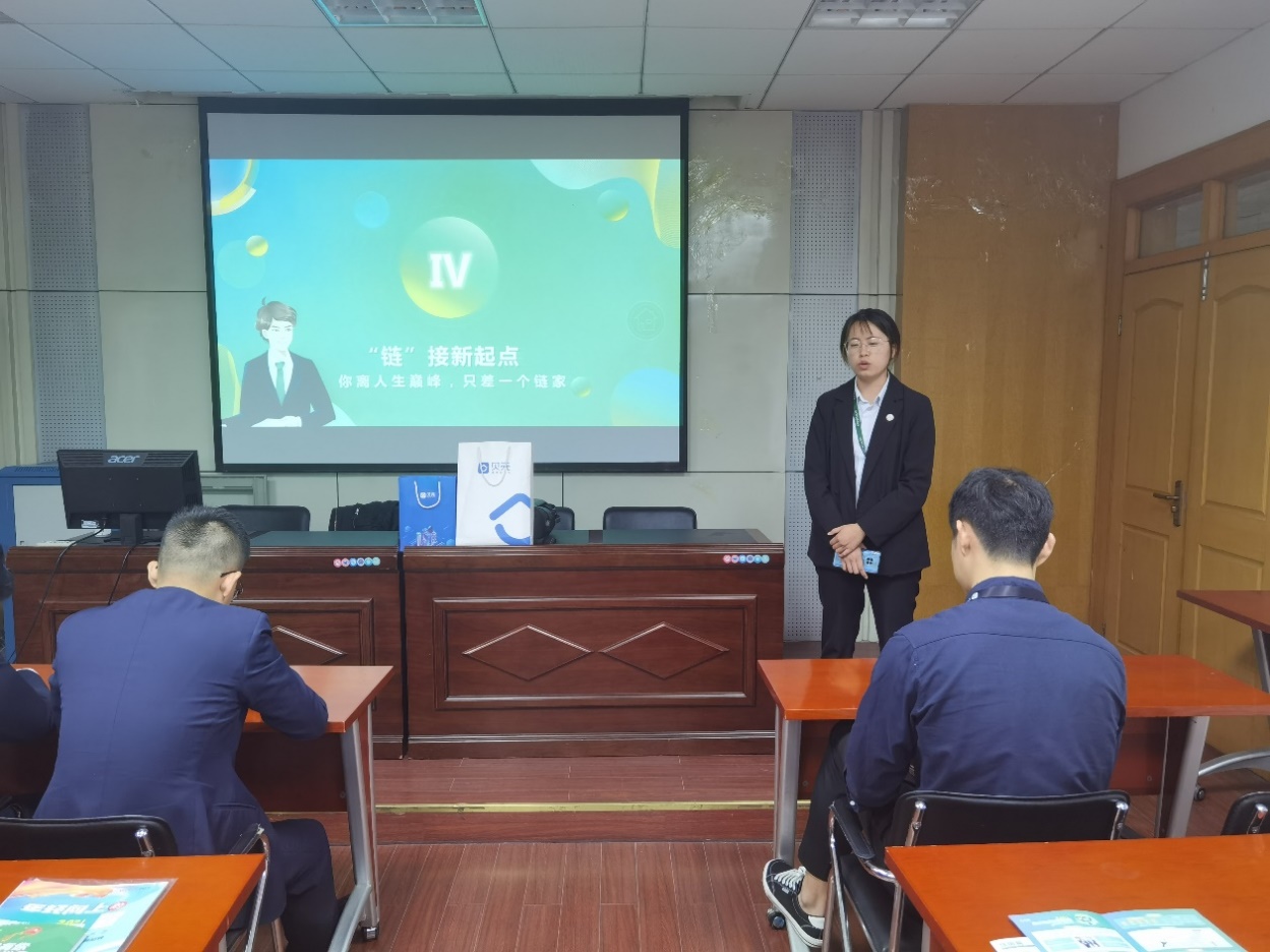 会中,王昕鹏先生指出,链家是一个房产服务产业,具备强烈的人才理念。企业概况方面,链家成立于2001年,发展至今业务已覆盖房产,家装,旅居,海外置业,资产管理等模块,品牌已进驻近29个城市和地区,服务超过1亿城市人口,旗下门店超过8000家,成为房地产服务行业的国民品牌;晋升路径方面,链家具有纵向,横向,以及转岗晋升三条通道,确保每一位职员的才能得到充分发挥;福利待遇方面,南京市政府对就业本科生实行住房补贴,企业对就业人员施行链家互助金。链家也定期举办海外旅行,智慧团建,运动比赛,兴趣社团等精彩活动。此后,主讲人王经理就本场宣讲内容和同学们进行了有奖问答活动,参会同学积极参与,现场气氛十分活跃。