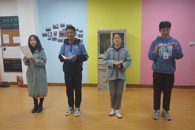 比赛以小组形式进行,每组四名同学对开篇词进行分句搭配朗读。比赛伊始,每一位参赛人员依次进行自我介绍,参赛选手们在规定的时间里完成主持开场白,将自己的独特风格带入到主持中,展现了属于自己的独特魅力。每位选手都有自己的独特音色和主持方式,有的慷慨激昂、振奋人心;有的娓娓道来、慢语诉说;有的句读分明,字正腔圆。参加朗诵节目的选手则感情充沛地朗诵了舒婷的《祖国啊,我亲爱的祖国啊》,给评委团留下了极深刻的印象。比赛历时一个小时,在经过激烈的角逐后,评委团对所有参赛选手进行讨论分析和评价。