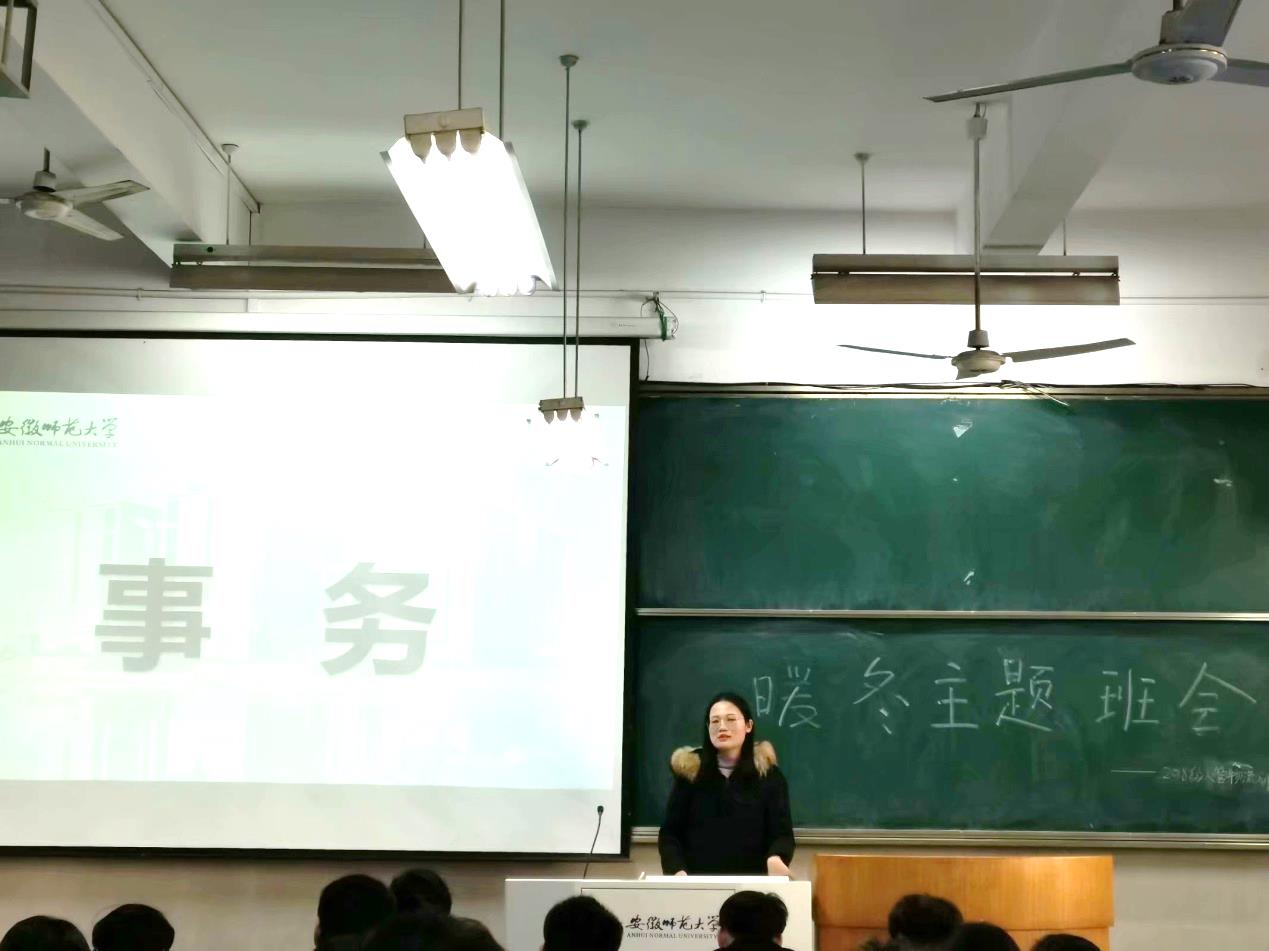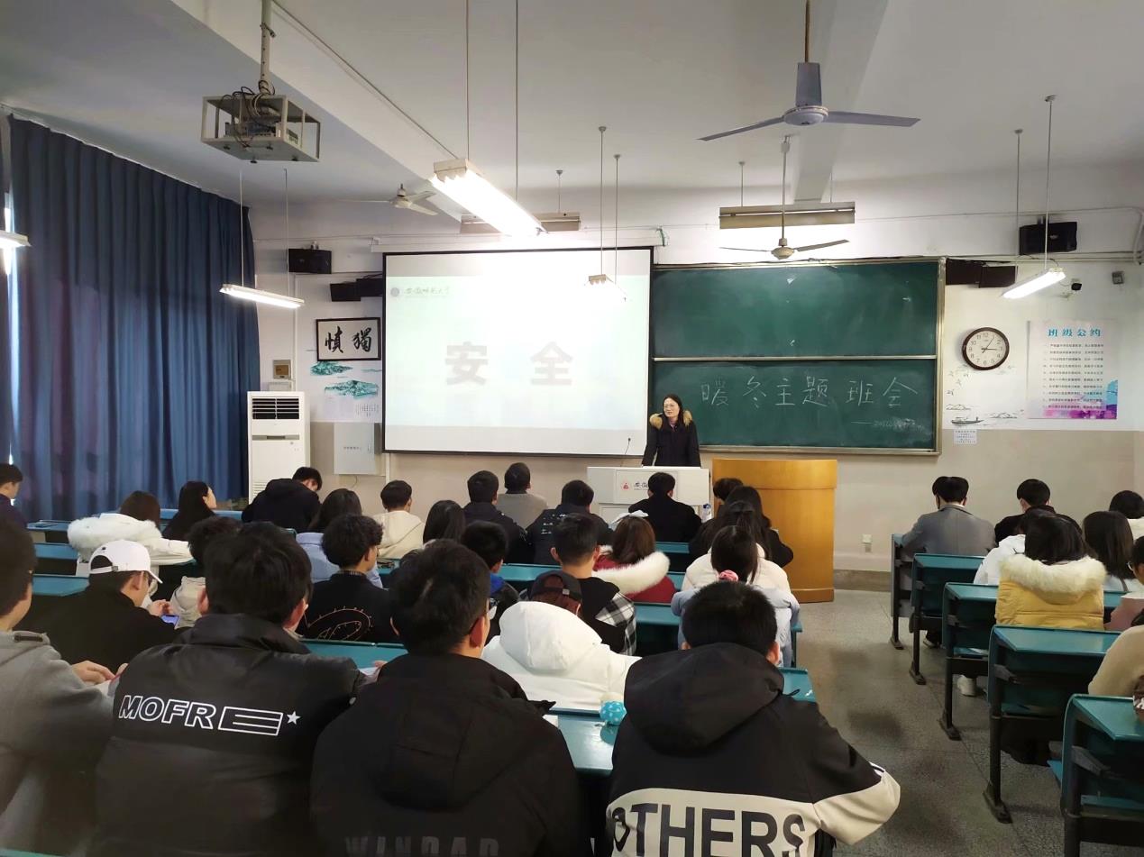 此次暖冬主题班会,盛亚琴老师围绕“安全”、“温暖”、“事务”、“期末”和“新年”五个方面依次为同学们进行了学习和生活上的工作强调。
