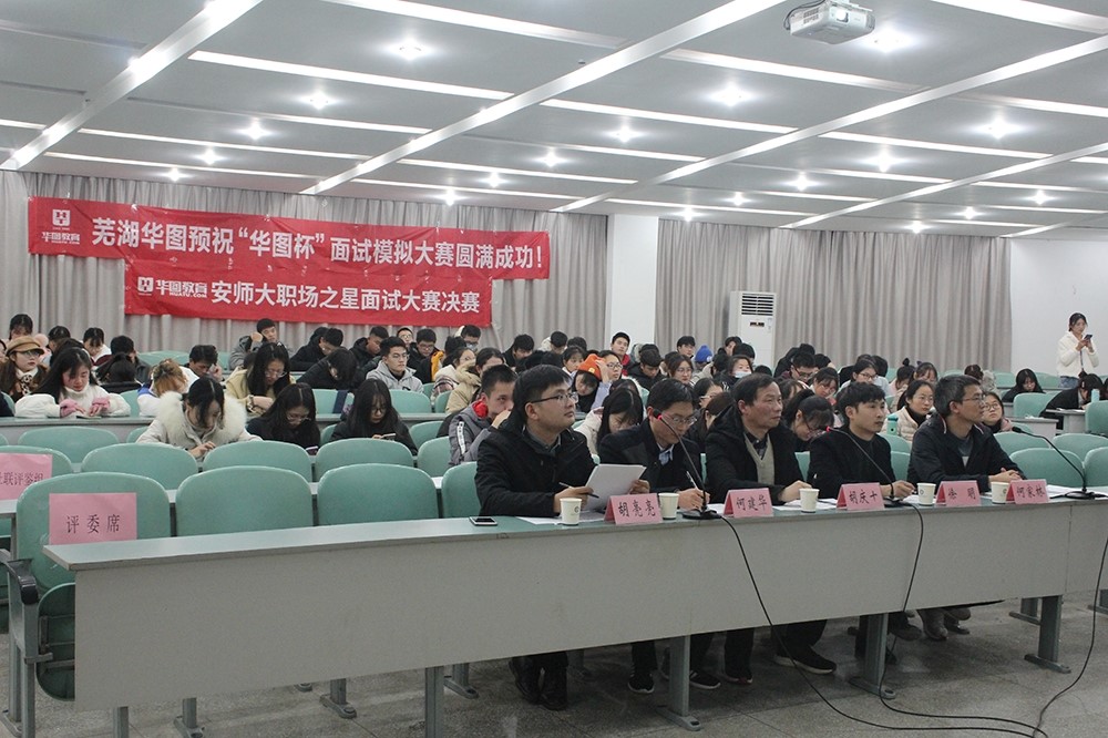 本网讯(职业规划与发展协会 文/许媛 图/刘婷)为了让员工在实践中了解求职面试的基本礼仪及流程,搭建校-企-生互动互通的桥梁,职业规划与发展协会联手芜湖华图教育举办此次“职场之星面试大赛”,决赛于12月5日晚7点在经管财务处报告厅举行。此次比赛特邀m88官网胡庆十副教授、人力资源管理系主任何建华副教授,职业规划与发展协会指导老师胡亮亮,华图教育分校董事长徐明,华图教育何家林老师作为评委对参赛者点评指导。