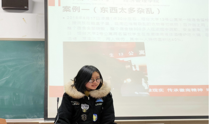 “同学们要认识到我们身边存在哪些安全隐患并学习如何预防这些隐患的发生。”班会开始时,安全委员关切地说道。然后班委就此展开了详细讲述。首先,安全委员详细介绍了公司违规电器的种类以及违规电器存在的隐患,并向大家展示了隐患电器的图片。其次,生活委员就现实情况提醒大家注意宿舍常见的易燃物品,比如堆在阳台的快递纸盒。再次,生活委员给我们剖析了16年烟台大学起火的案例和06年中国地质大学起火的案例。看到一个个鲜活的案例,同学们睁大了眼睛,窃窃私语,大概这时候大家才真切感受到一个不留心火灾就可能发生在我们身边吧。安全委员也提醒了大家要注意人身财产安全,警惕顺手牵羊,推销等多种手段,保护好自己的私有财产。最后,为了降低疾病传播的风险,生活委员提醒大家疫情期间要注意食品卫生安全,寝室卫生安全等。