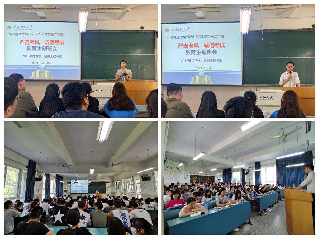 本次诚信教育主题班会以“管理和引导”为主旨,以宣传诚信考试为导向,以制度建设为重点,坚持教育引导、规范管理与员工自我教育相结合,使广老员工明确学习目的,树立“诚信考试”的观念,进一步提升了2019级经济学类班级学风建设。