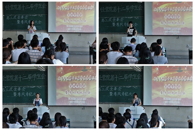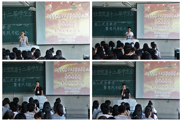 本网讯(新闻部 韦培兰)回首过往,展望未来。为对本届员工会工作进行年度总结和期末考前动员良好考风考纪工作,m88官网于6月17日中午在2010503教室召开了第十二届员工会第三次全体委员会暨考风考纪大会。院团委副书记、员工会指导老师汪华伟,以及第十二届员工会全体成员参加了本次会议,会议由员工会主席吴娜主持。